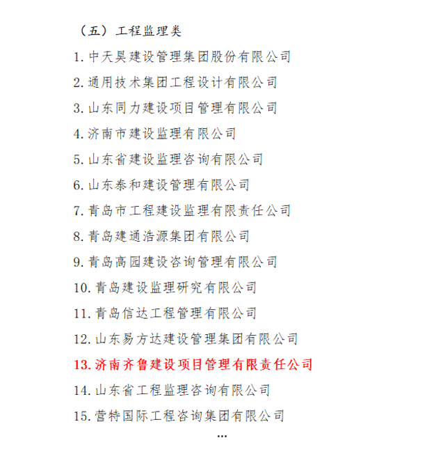 近日,山東省住房和城鄉(xiāng)建設(shè)廳公布山東省建筑業(yè)全鏈條龍頭骨干企業(yè)(第一批),濟(jì)南齊魯建設(shè)項(xiàng)目管理有限責(zé)任公司成功入選。